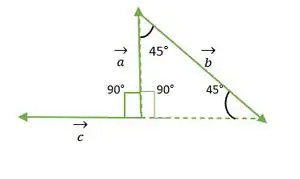 Nun fallen die Enden der Vektoren a und c zusammen und bilden einen Winkel, der dem rechten Winkel eines gleichschenkligen Dreiecks = 90° entspricht.