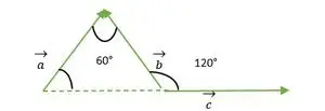 Jetzt sehen wir, dass die Enden der Vektoren b und c miteinander übereinstimmen und daher mit dem Außenwinkel eines gleichseitigen Dreiecks = 120° übereinstimmen.