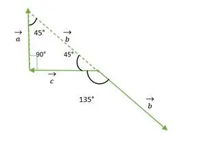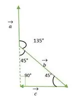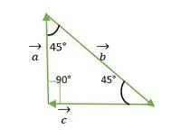 Aufgabe 2: Finden Sie Winkel zwischen Vektoren, wenn sie ein gleichschenkliges rechtwinkliges Dreieck bilden.